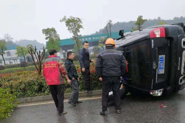 在現(xiàn)場,他們看到小車側(cè)翻卡在花壇中,邊上的小樹被壓倒在地,車內(nèi)一共三人,其中有個(gè)4歲左右的小女孩,司機(jī)在駕駛室里已經(jīng)"僵"住了。毛也成連忙問道:"你們情況怎么樣,有沒有受傷?"聽到有人詢問后,小女孩頓時(shí)哇哇大哭起來。毛也成使勁扒開花壇中的灌木,對已部分破碎的車窗玻璃進(jìn)行小心的再次破窗,成功的把小女孩從車?yán)锞瘸,一邊抱著她向油站休息室走去一邊溫和的安慰她說:"好孩子,別怕別怕,叔叔馬上帶你出去。"在事故現(xiàn)場的加油員周化與其他人一起熱心地幫助車內(nèi)的其他兩個(gè)人爬出車子。毛也成迅速回到現(xiàn)場,沉著冷靜的指導(dǎo)車主拔出鑰匙斷電,防止車輛發(fā)生自燃事件。短短的幾分鐘,一場驚心動(dòng)魄的險(xiǎn)情,通過他們對突發(fā)事件的沉著應(yīng)戰(zhàn),得到了初期的及時(shí)處理,車上的人員無一人受傷。