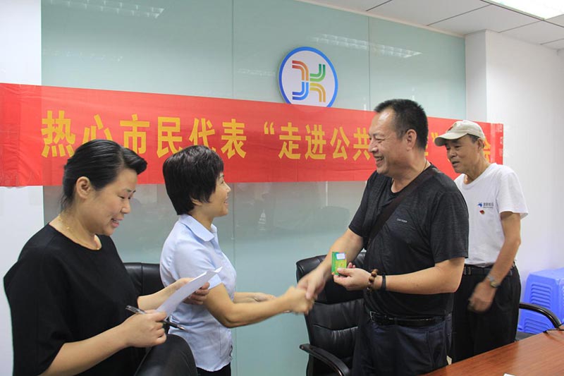 會場氣氛熱烈,代表們積極建言獻策。公司與會人員認真聽取并一一記錄,對公共自行車長期規(guī)劃等民生熱點內容也進行了詳細的解讀,并將一些意見和建議匯總上報,促使市民與公共自行車發(fā)展上達成共識,加深認識相互理解。另外為了提高代表們的參與度,使大家更好更方便的監(jiān)督公共自行車車輛、站點及鎖柱等一系列的系統(tǒng)運維情況,公司給每位代表都發(fā)放了公共自行車監(jiān)督卡,希望大家共同監(jiān)督,一起努力。最后,副總經理羅峰斌同志代表公司感謝代表們一直以來對公共自行車的支持和理解,并表示健寧將進一步提升服務水平,為市民出行服務好最后一公里。
