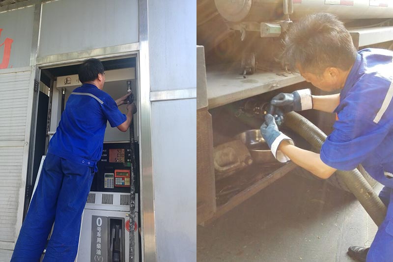 太陽炙烤下的卸油作業(yè)員,烈日當頭,汗如雨下堅守在卸油口,還不忘卸油口、消防設備的安全檢查。杜絕各類安全隱患,確保安全運營,你們是好樣的。
