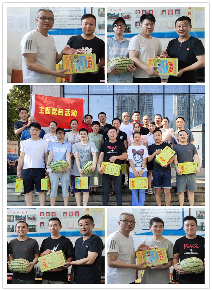 隨后,中心黨支部組織黨員開展了"高溫酷暑送清涼"活動,為戰(zhàn)斗在高溫天氣中的一線員工送去了清涼解暑的西瓜和涼茶,并對他們在高溫酷暑下辛勤勞動的敬業(yè)精神表示出了崇高的敬意!