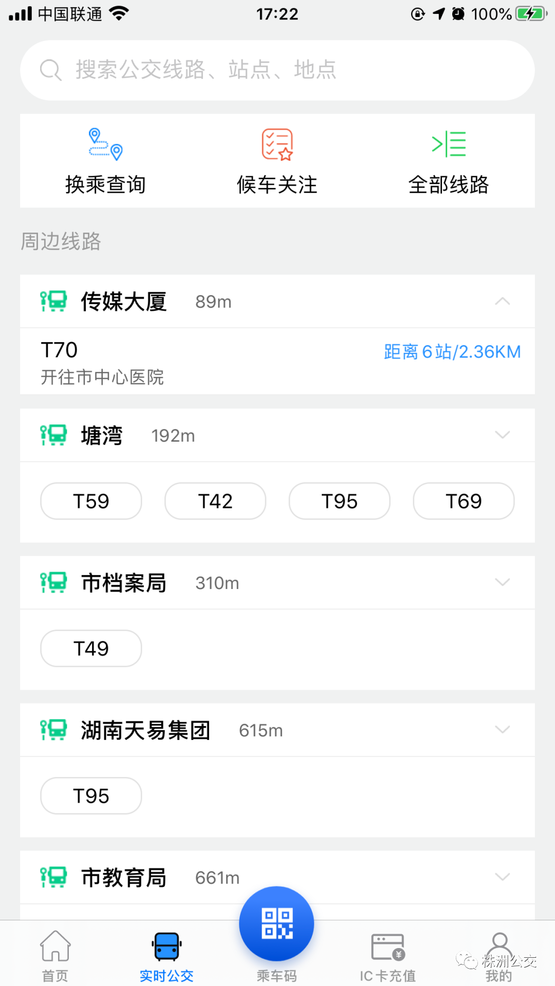 "株洲通"APP不僅可以實(shí)時(shí)查詢公交動(dòng)態(tài)信息,還有公交乘車碼、IC卡充值等多種服務(wù)功能。