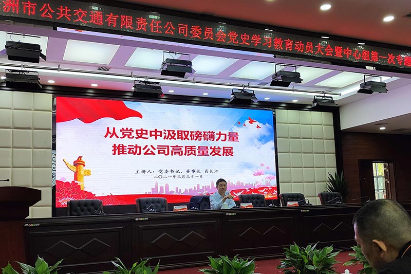 會議首先傳達(dá)學(xué)習(xí)了習(xí)近平總書記在黨史學(xué)習(xí)教育動員大會上的講話精神,隨后,公司黨委書記、董事長肖長江同志作黨史學(xué)習(xí)教育動員講話,并對全司學(xué)習(xí)教育工作進(jìn)行部署安排。緊接著,公司黨委副書記、工會主席譚劍平同志帶領(lǐng)大家集中研讀黨史重點學(xué)習(xí)書目《論中國共產(chǎn)黨的歷史》,開展"學(xué)史明理"第一次專題學(xué)習(xí)。最后,肖書記以《從黨史中汲取磅礴力量 推動公司高質(zhì)量發(fā)展》為題,為大家上了一堂黨史學(xué)習(xí)教育主題黨課,號召全司黨員干部職工貫徹新發(fā)展理念,構(gòu)建新發(fā)展格局,為建設(shè)現(xiàn)代化公交企業(yè)貢獻(xiàn)力量。