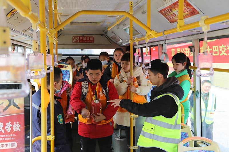 公交公司前坪兩臺公交巴士前,孩子們被分為兩個組,參與"突發(fā)情況緊急逃生體驗"和"駕駛位體驗公交視野盲區(qū)"。通過參加活動,讓欄目小記者更加了解公交車的結(jié)構(gòu),坐在駕駛員位置上,孩子們清楚的感受到了視力所及不到的視野盲區(qū)。坐在乘客位上,觀看駕駛員叔叔講解公交車廂內(nèi)應(yīng)急安全錘、消防滅火器的正確使用方法,親身體驗了突發(fā)情況緊急逃生全過程。從公交巴士上下來,孩子們紛紛表示:"這次活動體驗深刻,我們學(xué)到了很多有用的知識!"