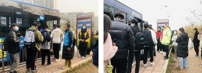 二是開通職教城直通車。在客流調(diào)查的基礎上,公司開通了周五"職教城至紅旗廣場","職教城至中心廣場"的學生專線直通車。增開直通車根據(jù)天氣和現(xiàn)場調(diào)度進行靈活運調(diào),當日增加10臺直通車,運送學生約一萬多人,每周安排交通勸導人員30人。