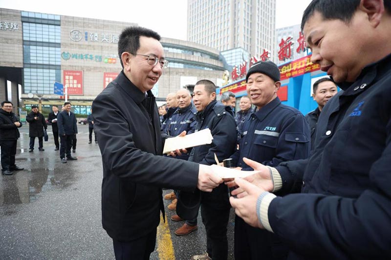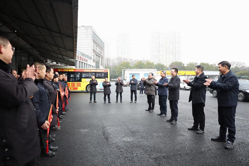 上午9點(diǎn),易湘東一行深入神農(nóng)城北公交首末場(chǎng)站和河西公交基地等場(chǎng)站慰問公交一線職工,對(duì)市公交公司全體干部職工一年來的辛勤付出表示誠摯的感謝。
