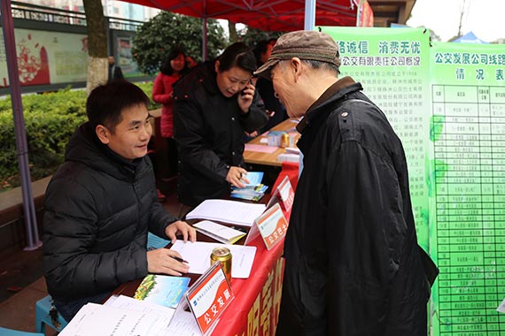 3月15日上午,在總公司服務中心牽頭組織下,巴士、發(fā)展、健寧、廣告公司和結算中心工作人員前往中心廣場電信大樓前坪,以志愿服務者的身份,參加由市消費者協(xié)會發(fā)起的以“網(wǎng)絡誠信 消費無憂”為主題的消費者權益日宣傳活動,倡導公交綠色出行,現(xiàn)場為市民講解乘車需知、公交線路規(guī)劃、掌上公交應用、公交IC卡使用及交通法規(guī)等,同時接受接受市民咨詢,聽取市民意見和建議,并發(fā)放服務調(diào)查問卷700余份,主動置身于市民監(jiān)督之中。